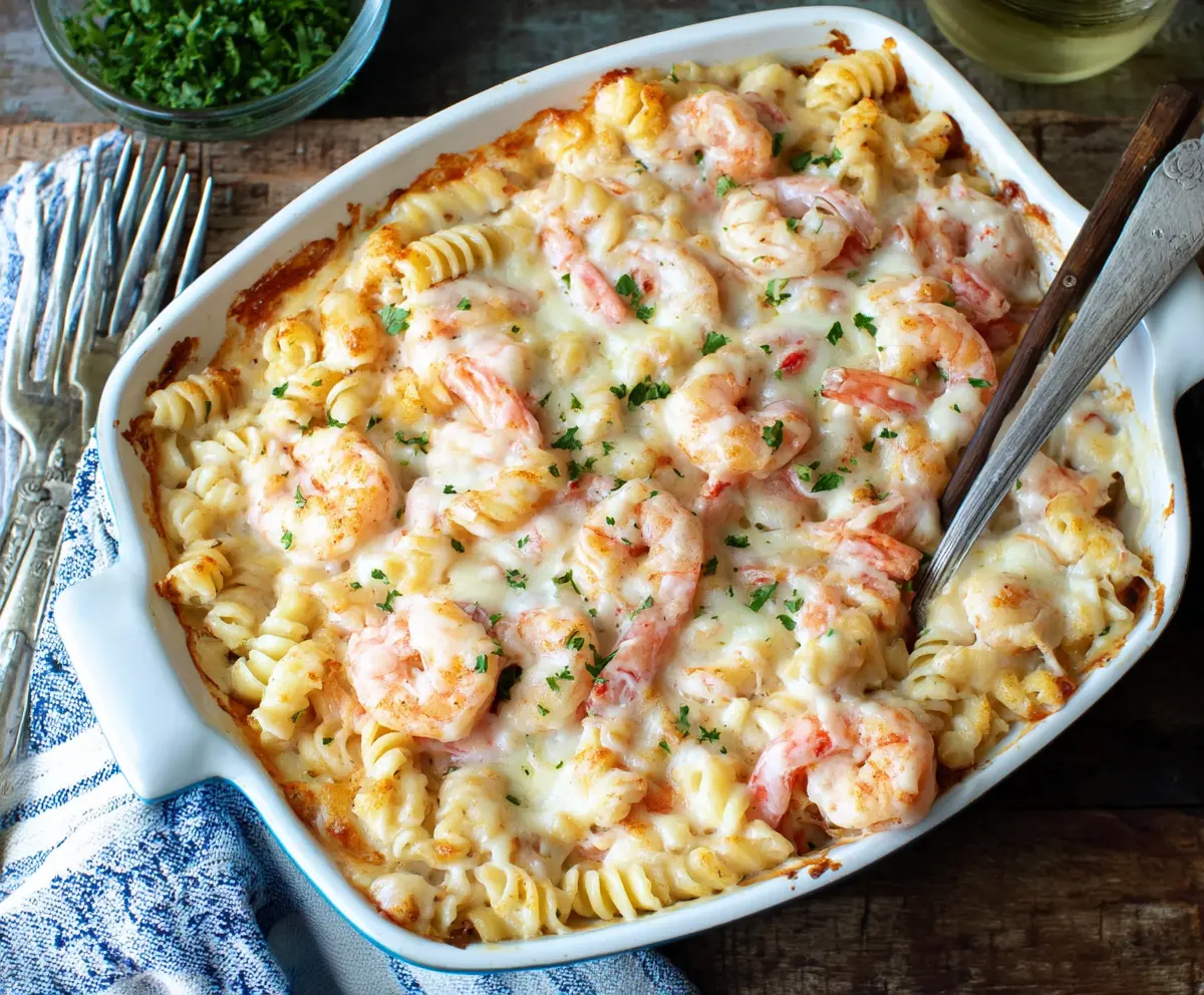 Delicious Shrimp Alfredo Pasta Bake