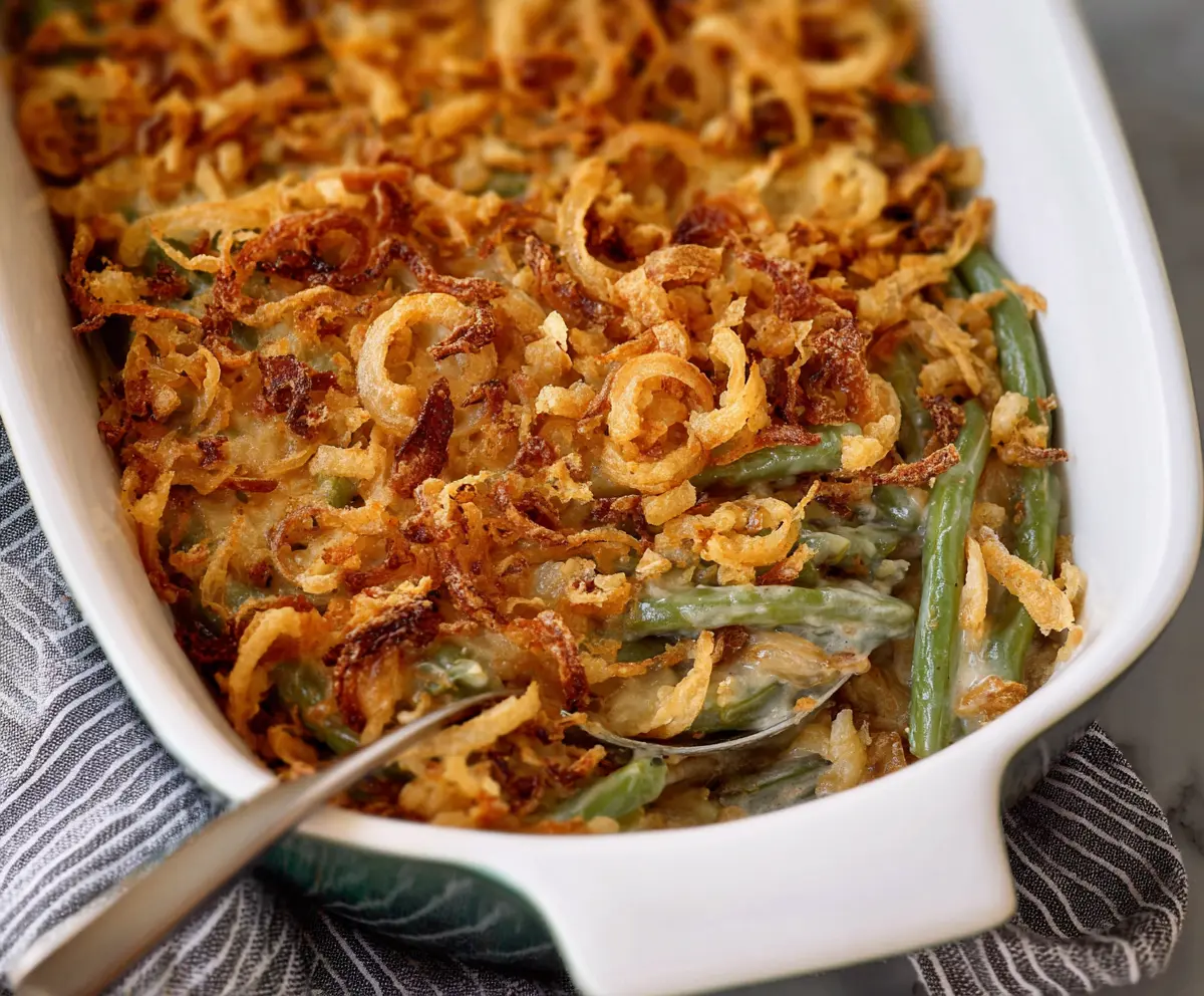 This Simple Green Bean Casserole is a tasty mix of green beans, creamy sauce, and crunchy fried onions. It’s comforting and perfect for family dinners!