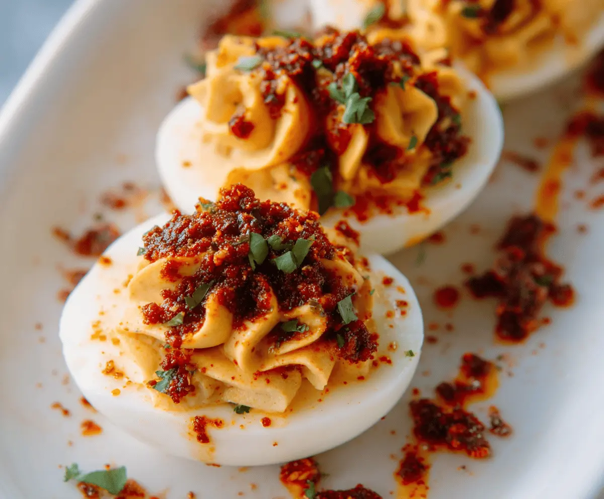 These Spicy Chili Garlic Deviled Eggs are a fun twist on the classic! With a zesty kick from chili and a flavor boost from garlic, they’re sure to make your taste buds dance.