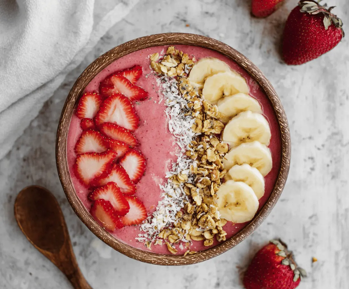 Yes, you can use fresh strawberries, but the smoothie bowl won’t be as thick or cold. To achieve a similar texture, you might want to add some ice or freeze the fresh strawberries beforehand.