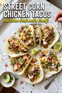 Street Corn Chicken Tacos hit the table with the kind of contrast that keeps people coming back for seconds: smoky chicken, buttery charred corn, cool cotija, and a squeeze of lime over a warm tortilla. The best bites are layered, not overloaded. You get juicy meat first, then the sweet pop of corn, then that salty-creamy finish from the cheese.