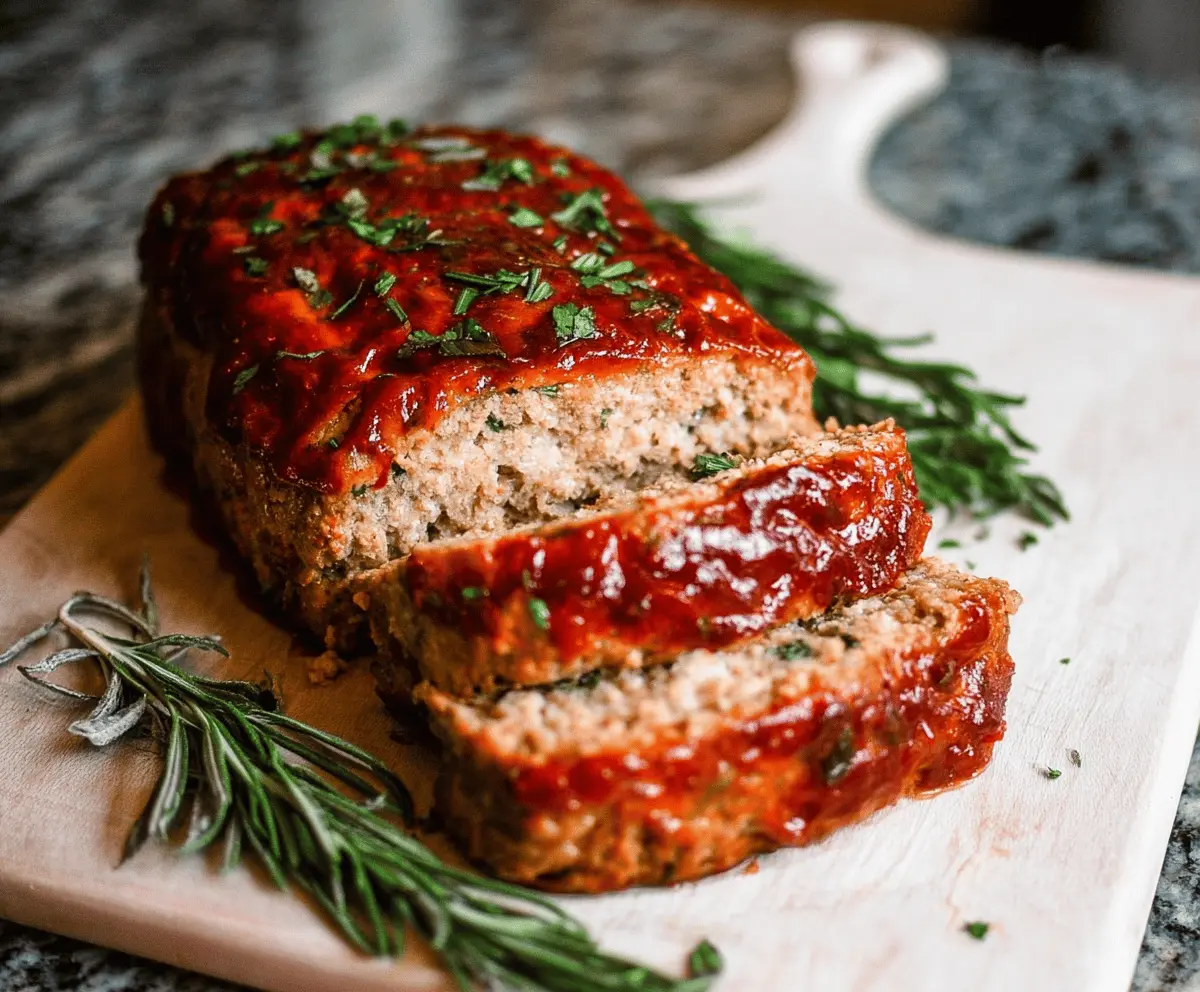 Enjoy your moist and flavorful turkey meatloaf with a tangy tomato glaze!