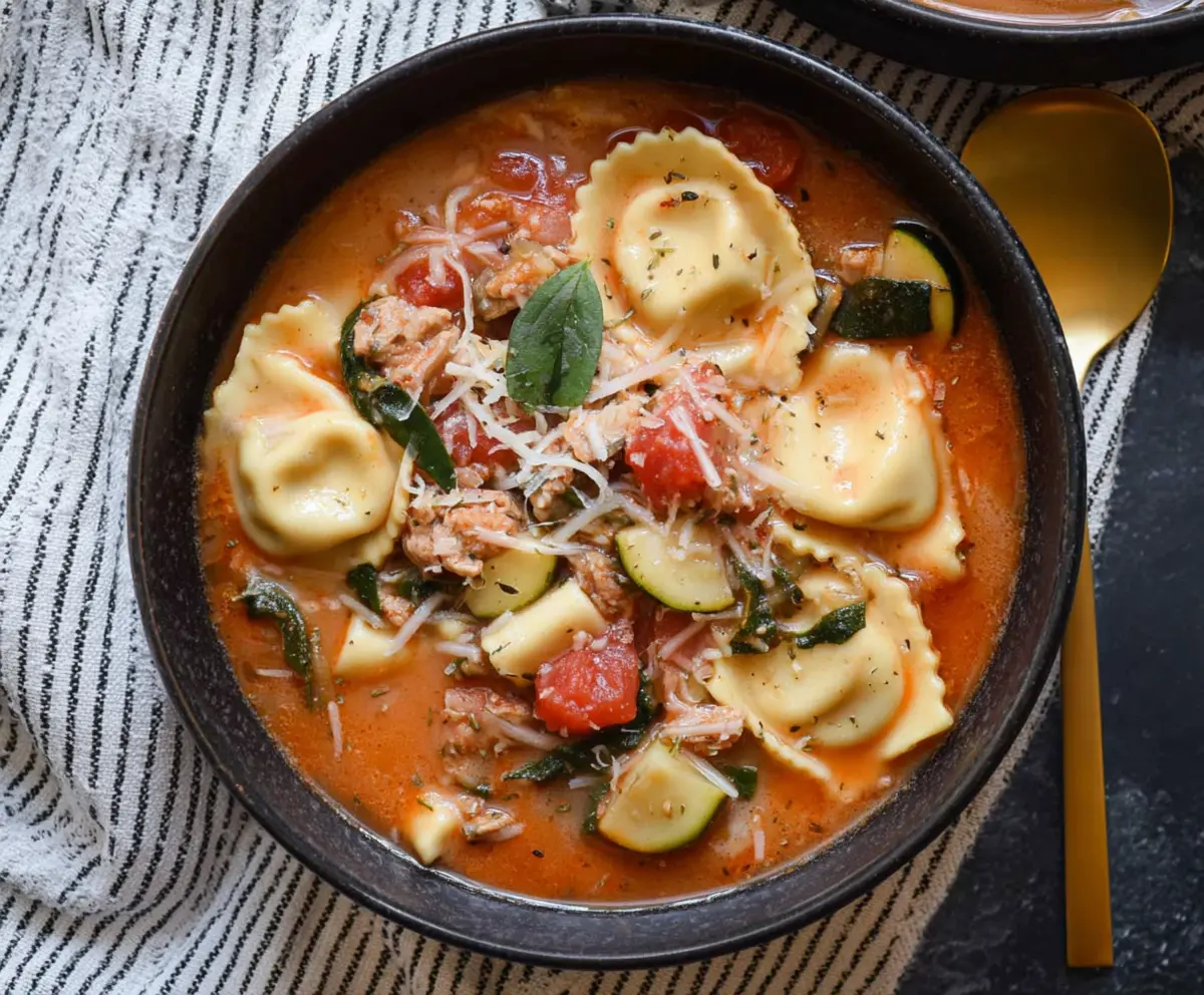 This Tuscan Ravioli Soup is a warm hug in a bowl! Packed with tasty cheese ravioli, fresh greens, and a rich tomato broth, it’s simply comforting and delicious.