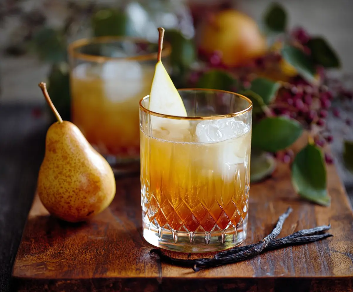 This cocktail mixes the sweet notes of pear with the warmth of bourbon and aromatic vanilla, making it a delightful choice for any autumn gathering or cozy night in.