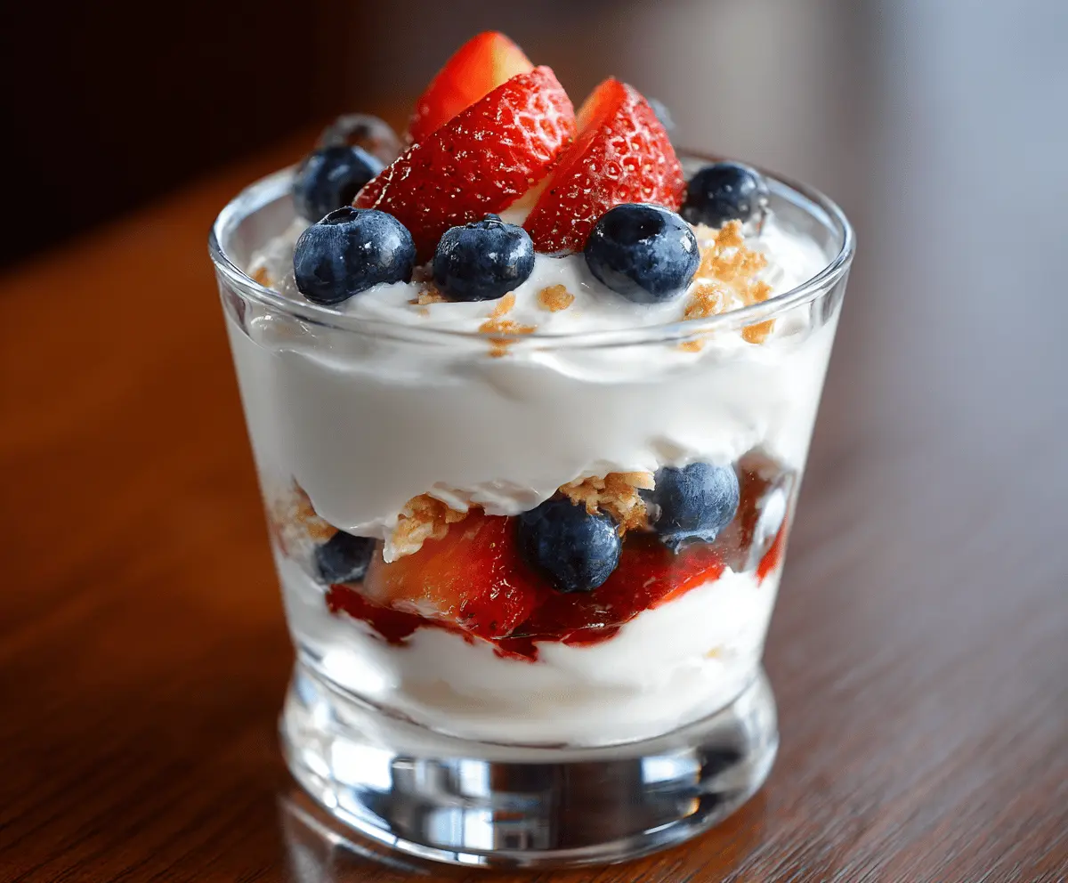 This yogurt and fruit parfait is a tasty and healthy treat. It layers creamy yogurt with fresh fruits and crunchy granola, making a colorful and refreshing snack or breakfast.